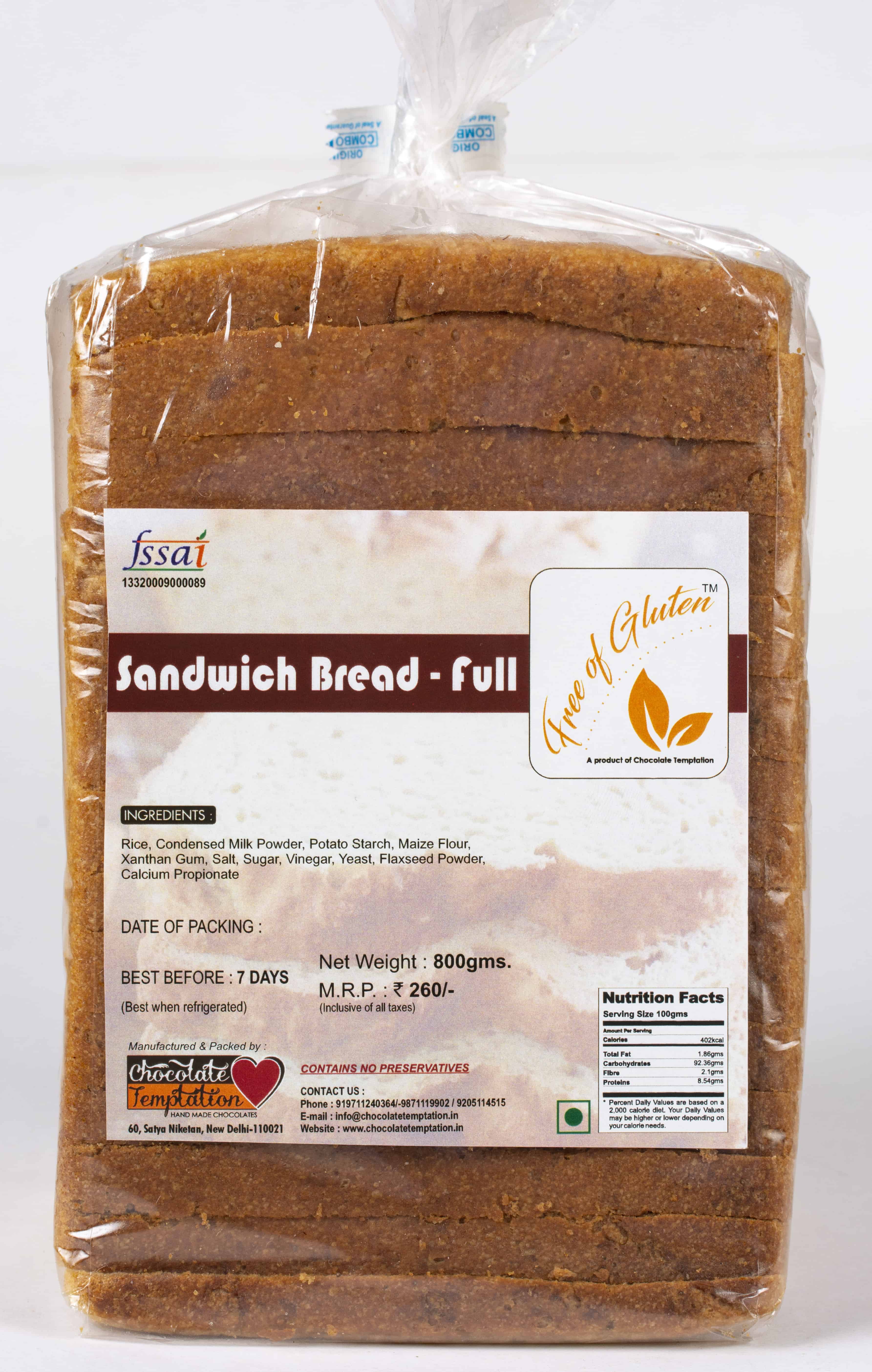 Conveniently packaged in a 250gms pack, our Chocolate Temptation Sandwich Bread Full ensures you have an ample supply of this delightful creation. Perfect for families or individuals who appreciate a touch of chocolate in their daily meals.