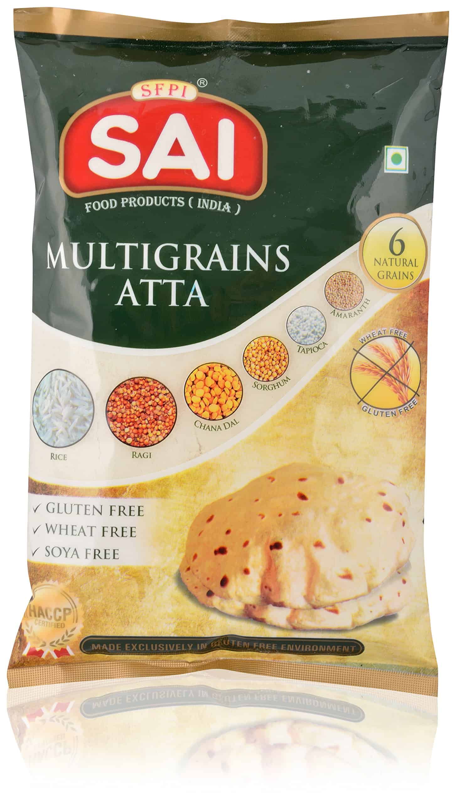 Sai Multi Grain Atta is a type of flour made from a blend of six different grains: rice, ragi, chana dal, sorghum, tapioca, and amaranth. It is a good source of protein, fiber, and vitamins and minerals.