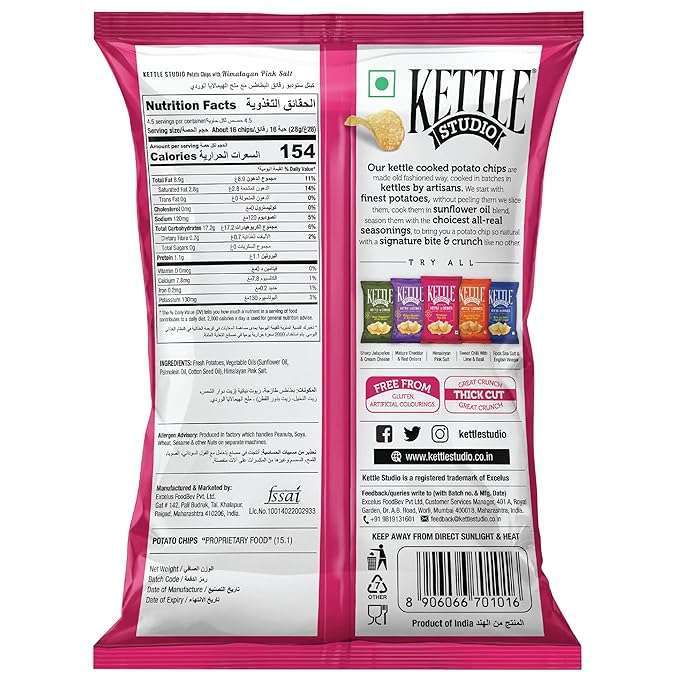 - Crafted with Care:Kettle Chips are crafted with care to ensure a premium snacking experience. The simplicity of the Himalayan Pink Salt allows the natural flavors to shine, creating a harmonious balance that makes these chips stand out from ordinary snacks.