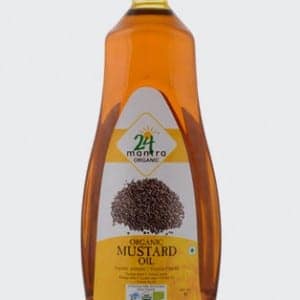 Experience the wholesome goodness of cold-pressed organic mustard oil. 24 Mantra ensures that each drop retains its natural flavors and nutritional benefits, providing you with a high-quality cooking oil.